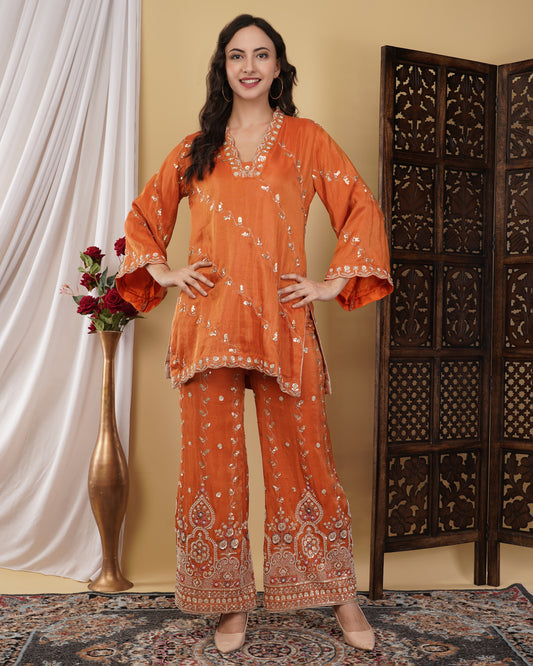 Tangerine Kurta Set with Bell Bottoms