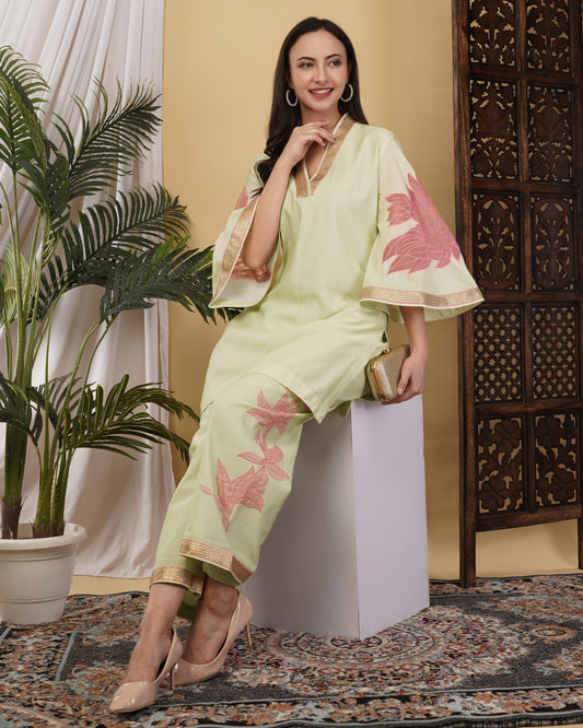 Light Pistachio Green Chanderi Silk Co-Ord set